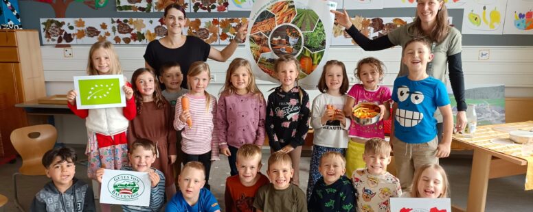 In der 6. Schulwoche besuchten zwei Bäuerinnen und gleichzeitig Mütter unsere Schulanfängerinnen. Dabei ging es um gesunde Ernährung und gesunde Jause.